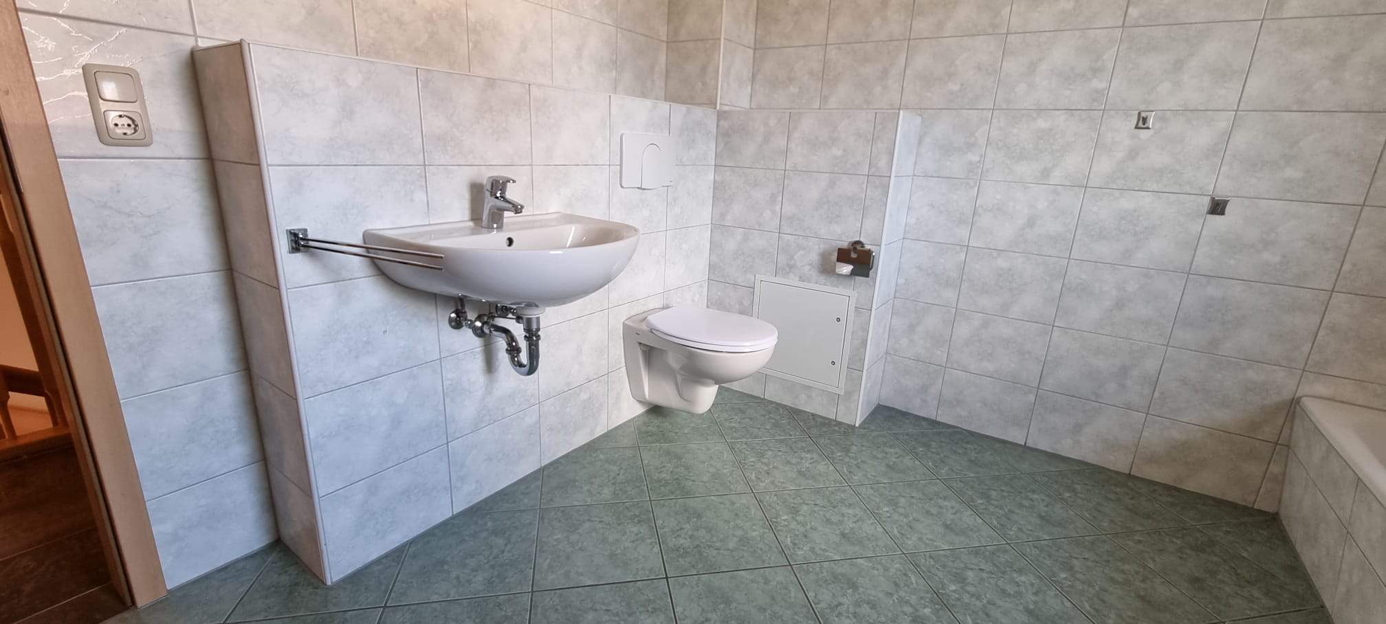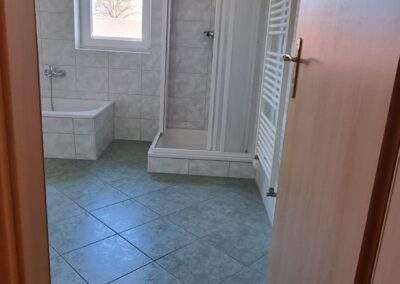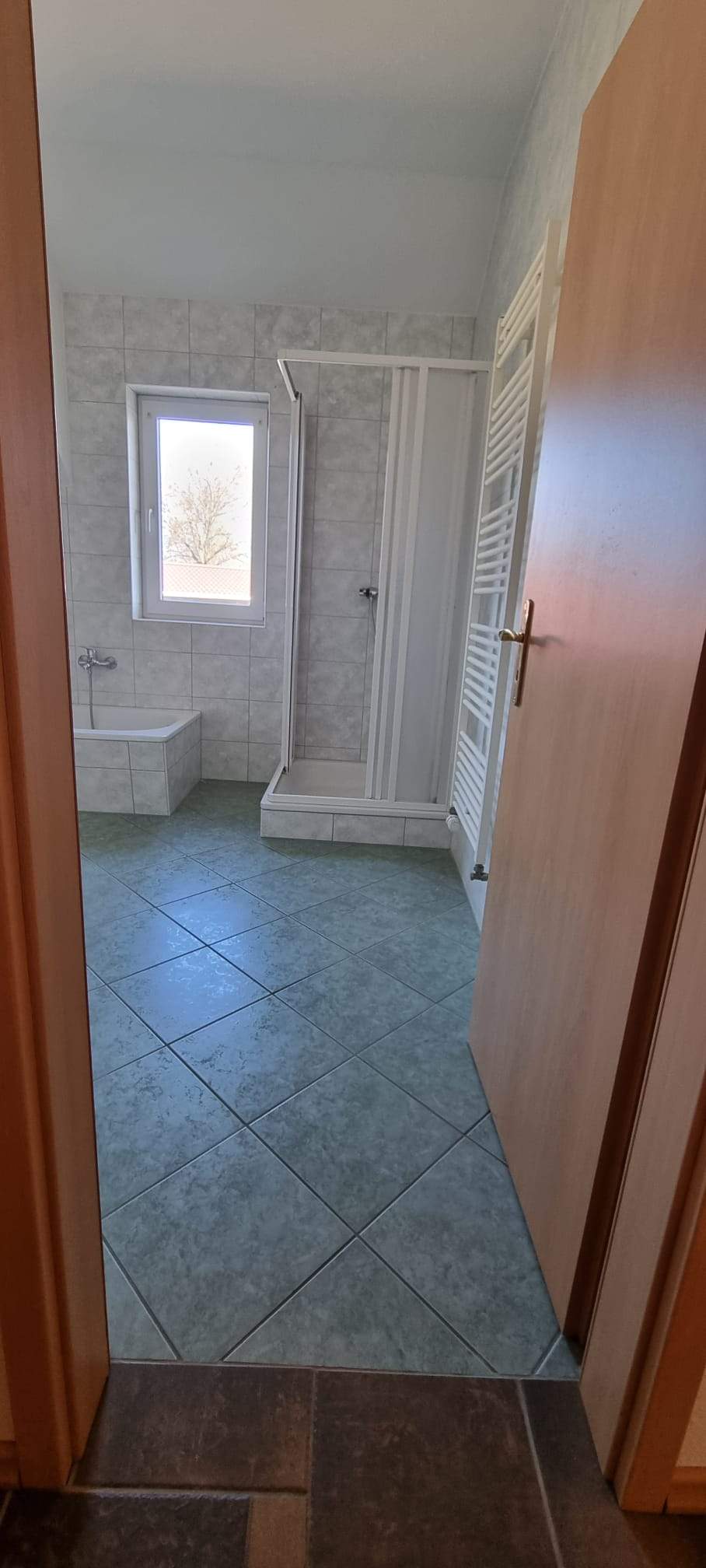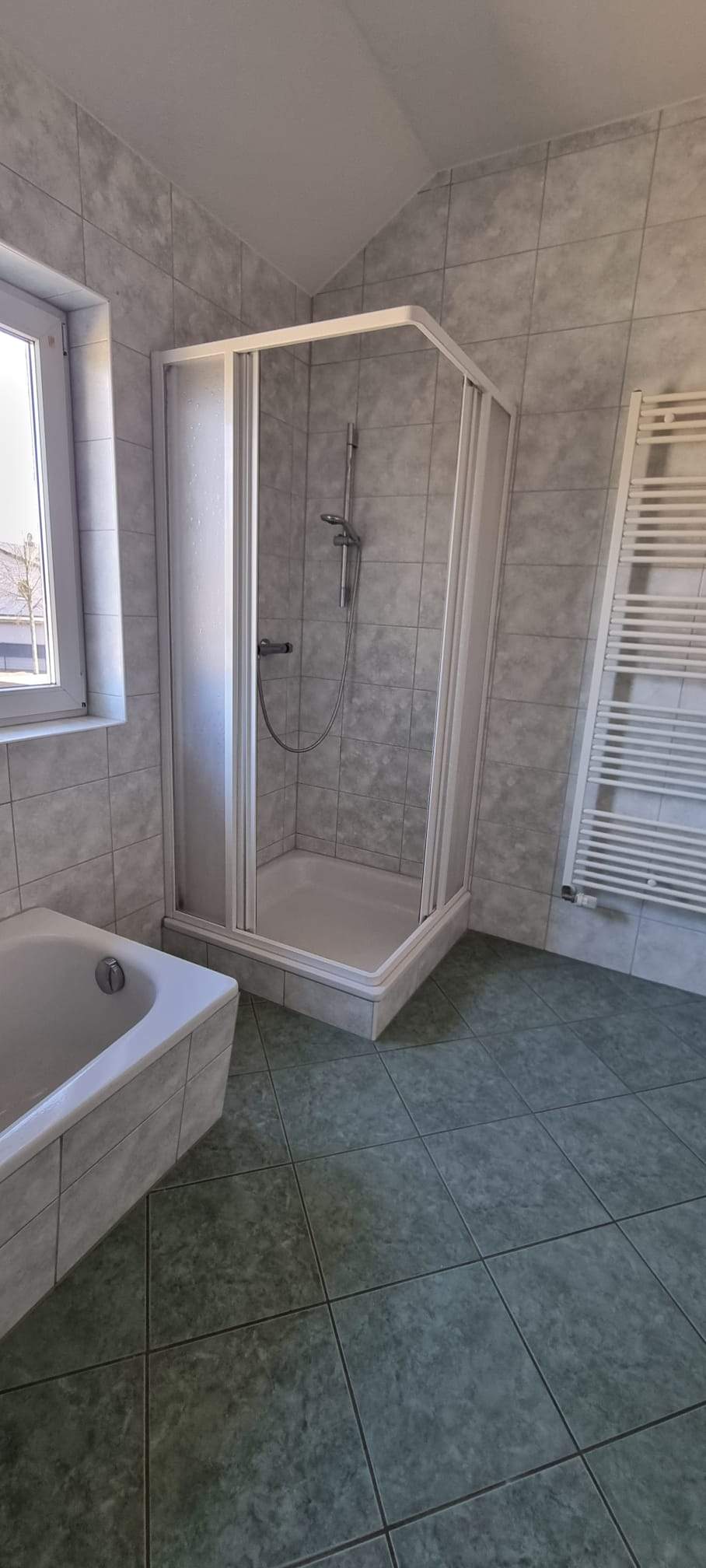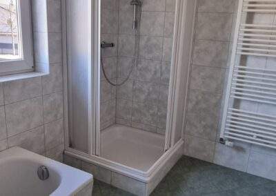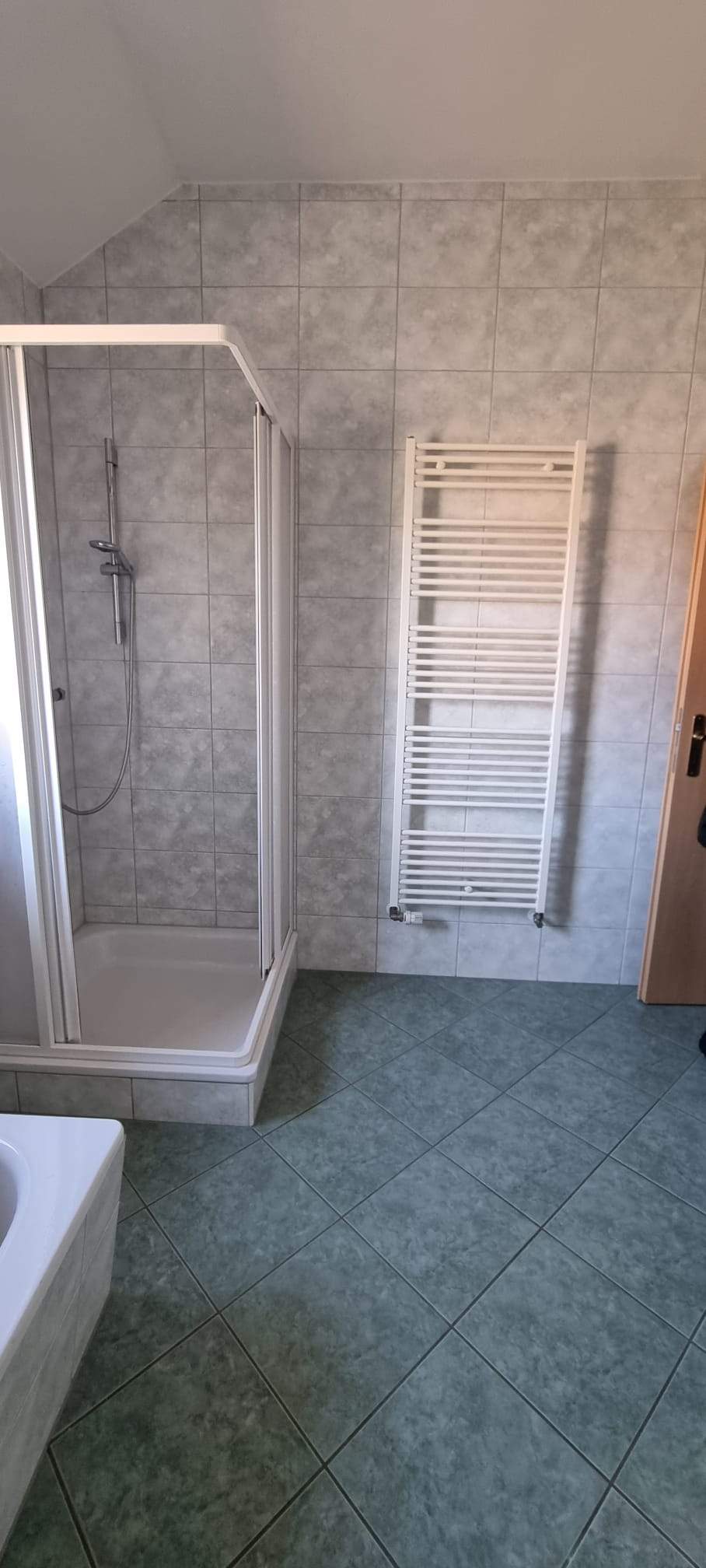 - großzügiges Badezimmer im Obergeschoss mit Dusche, Badewanne und Handtuchtrockner